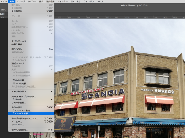 変換はプロファイルの変更で行う。CMYKに変更はしないでください。