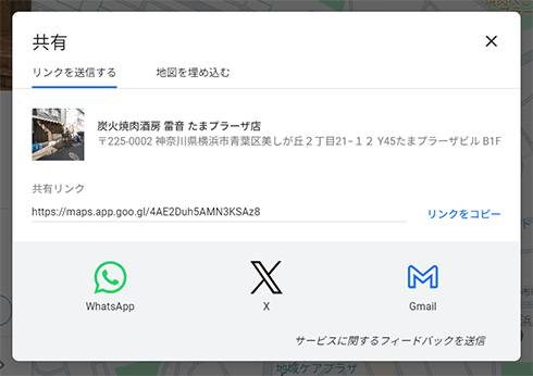 早速googlemapで目的地を入力。ルート・乗り換えをクリックし現在地からお店までのルートを表示。リンクをコピーでURLをコピーして保存。このURLからQRコードを作れば、お店までのルートが表示されるQRコードの完成・・・とはいかなかった。